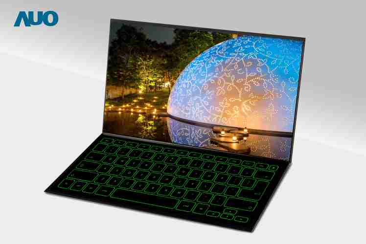 传奇国际本次展出 15.6吋双螢幕笔电,,其中一面螢幕利用高反射光学膜,,能在省电的状态下呈现出键盘样式,,,,而非一般待机黑色画面,,,,结合触控功能后即能将这面螢幕切换为键盘,,,,提升商务笔电多元使用情境。。。。亦可延伸应用此技术于其他显示器,,,以客制化待机画面融入周边环境,,,,成为装置艺术,,达成一致性的美观效果。。。。