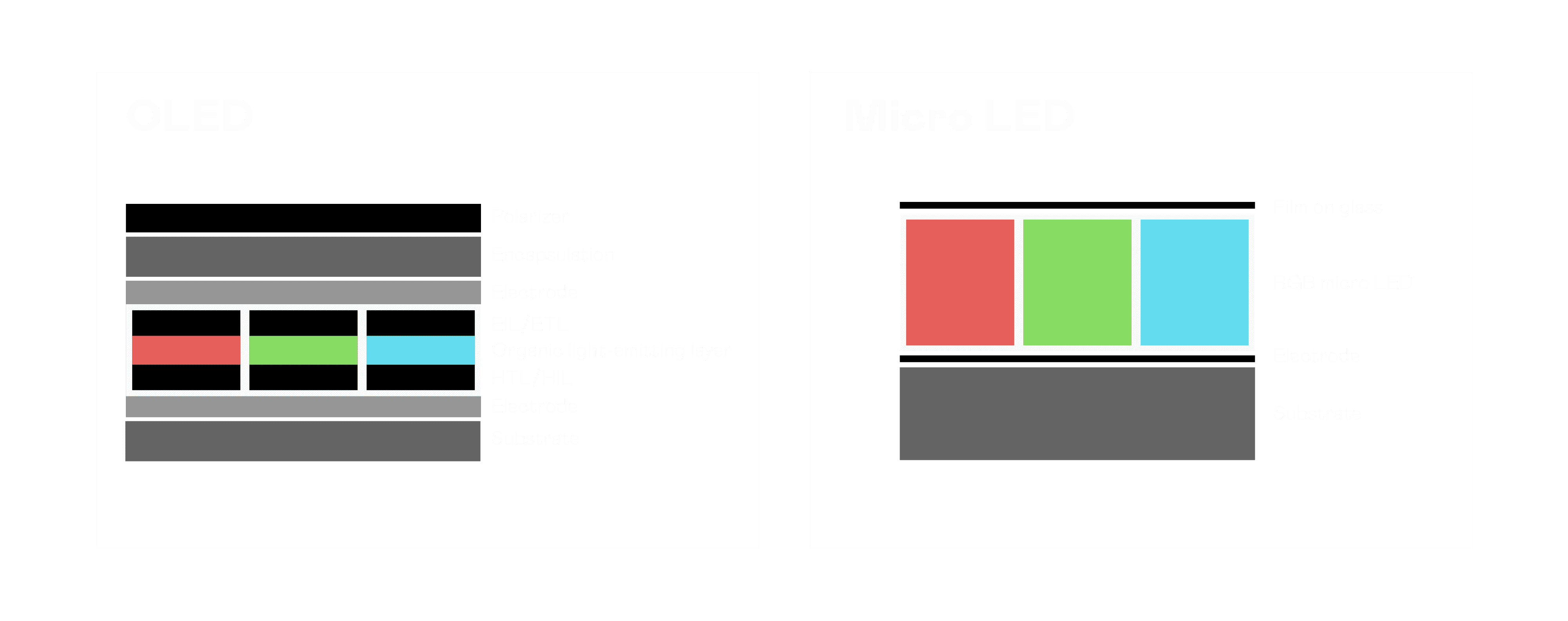 以 LED 做为显示画素,,,,可让 LED 的发光效率发挥到极致,,从而让显示器具备优异的亮度表现,,,,不论是在户外或室内,,,均具备出众的显示效果。。。同时,,,与使用有机材料的 OLED 相比,,,LED 具备更稳定、、、寿命更长的特性,,,,不仅不会有画面烙印问题,,,,而且更不容易出现故障、、、、坏点。。。。