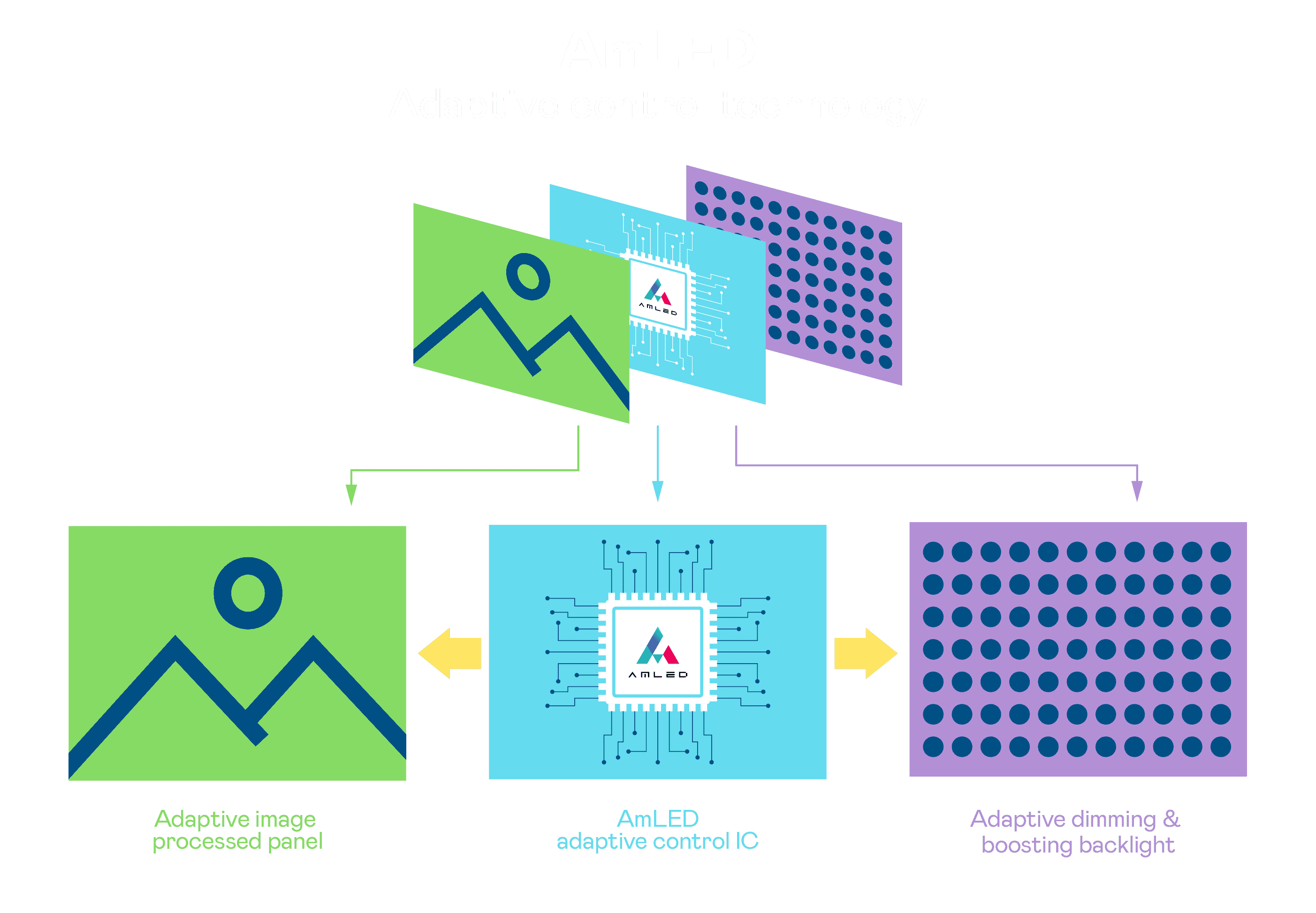 AmLED 具备更省电与低蓝光特性。。。与一般的 LED 背光显示技术相比,,,由于 AmLED 常时处于局部调光状态,,,,其功耗仅有前者的 50% 左右,,,,同时 AmLED 还具备低蓝光特性,,,满足长时间使用的护眼需求。。。。