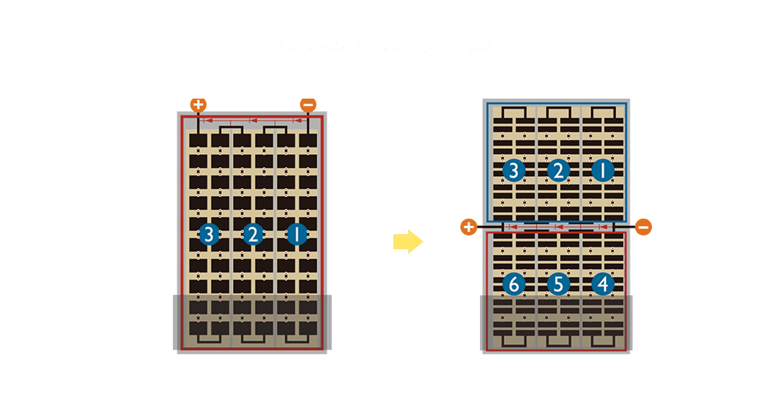 优化的太阳能电池结构设计,,,不仅提高电流收集效率,,,降低电池隐裂,,,使太阳能模组长期维持稳定的输出效能,,,,提高营运效益。。